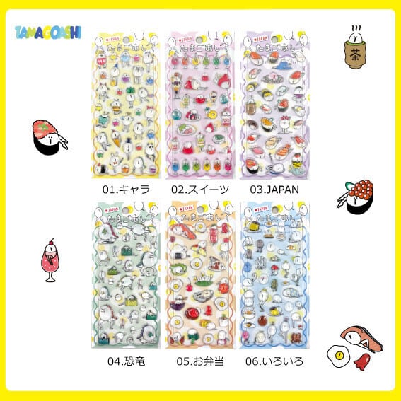 【予約】たまごあし ぷっくりシール キャラクター 立体シール 6種類