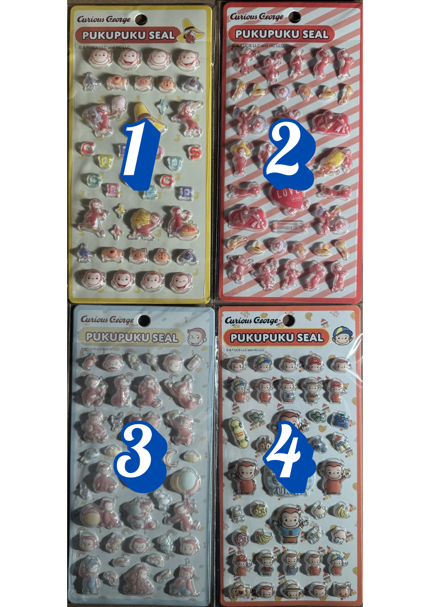 おさるのジョージ ぷくぷくシール 4柄 シール ジョージ キャラクター 立体シール
